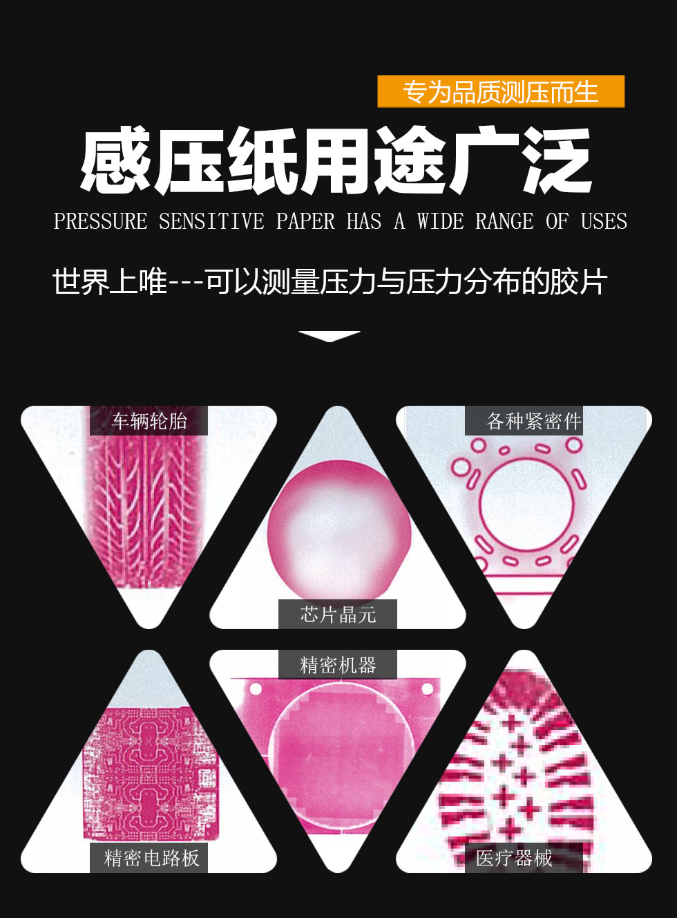 除了在制造業(yè)中的應(yīng)用,壓力測(cè)試紙還可以用于檢測(cè)印刷機(jī)上的壓力分布,確保印刷品的質(zhì)量;也可以用于層壓滾筒之間的壓力測(cè)試,以及起偏板的壓制過(guò)程等。